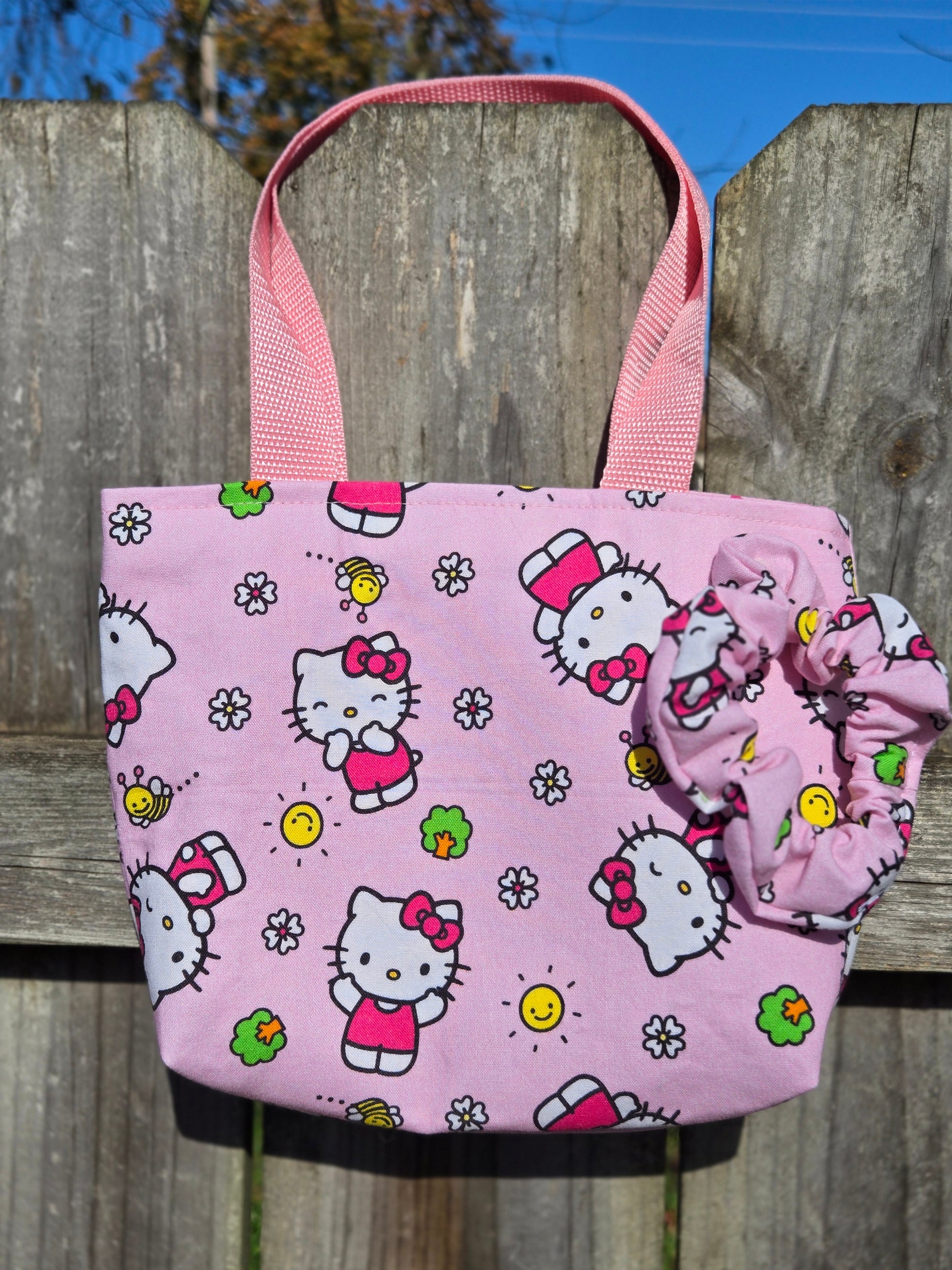 Adorably sturdy and just right for little hands, this 100% cotton mini tote now comes with matching scrunchies for an extra touch of fun. Perfect for carrying toys, snacks, or tiny treasures wherever they go! With durable 100% polypropylene handles and completely machine washable and dryable fabric, cleanup is as easy as playtime.